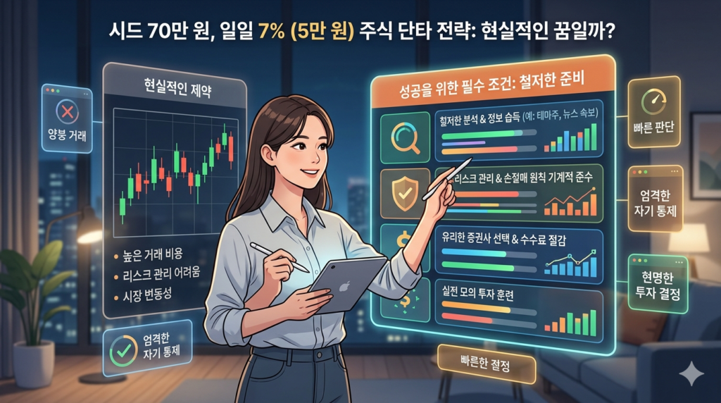 시드 70만 원, 일일 수익 5만 원(7%) 주식 단타 전략으로 현실적인 꿈일까?